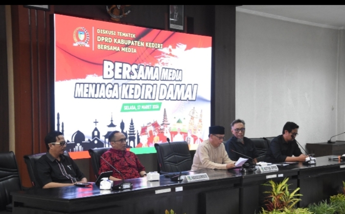 Untuk menjaga situasi kondusif dan damai, Dewan Perwakilan Rakyat Daerah (DPRD) Kabupaten Kediri mengadakan kegiatan Diskusi Tematik Pimpinan DPRD dengan para insan media pers dengan tema ”Bersama Media, Menjaga Kediri Damai”.di Ruang Tegowangi BKAD Kabupaten Kediri, pada Selasa (17/3/2026).