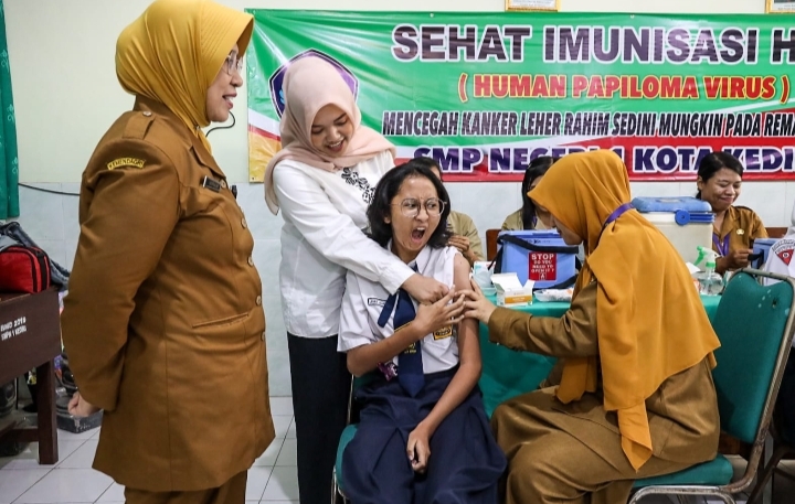 Data dari Kementerian Kesehatan RI menunjukkan, setiap tahun diperkirakan terdapat lebih dari 36.000 kasus kanker leher rahim (serviks) baru terdeteksi di Indonesia. Maka dari itu, sebagai upaya melindungi kaum hawa di Kota Kediri agar terhindar dari kanker serviks, Dinas Kesehatan Kota Kediri melakukan aksi jemput bola menggelar Program Kejar Vaksinasi Human Papilloma Virus (HPV) ke seluruh Sekolah Menengah Pertama (SMP) Kota Kediri.