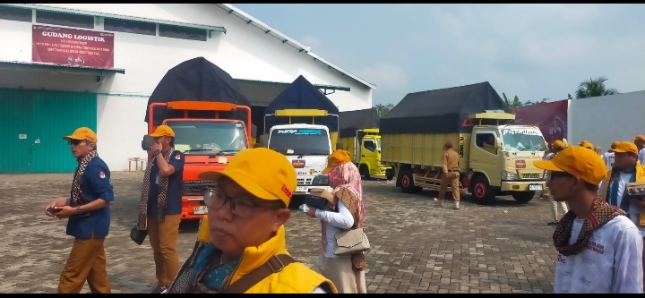 Iring-iringan truk pengangkut logistik Pemilu saat keluar dari gudang KPU.(foto:ist_pledoi.co