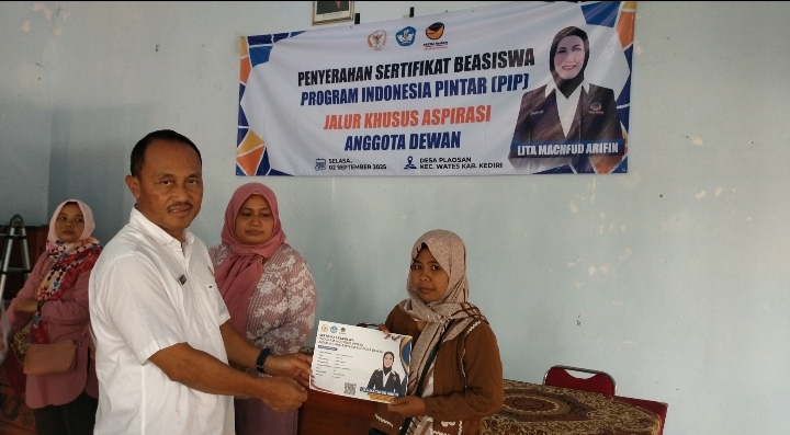 Anggota Komisi X DPR RI Lita Machfud Arifin yang juga Ketua DPW Partai Nasdem Jawa Timur melalui Ketua DPD NasDem Kabupaten Kediri Drs.H.Lutfi Mahmudiono menyalurkan bantuan Program Indonesia Pintar (PIP) kepada 100 siswa SD, SMP dan SLTA di Kecamatan Wates Kabupaten Kediri.