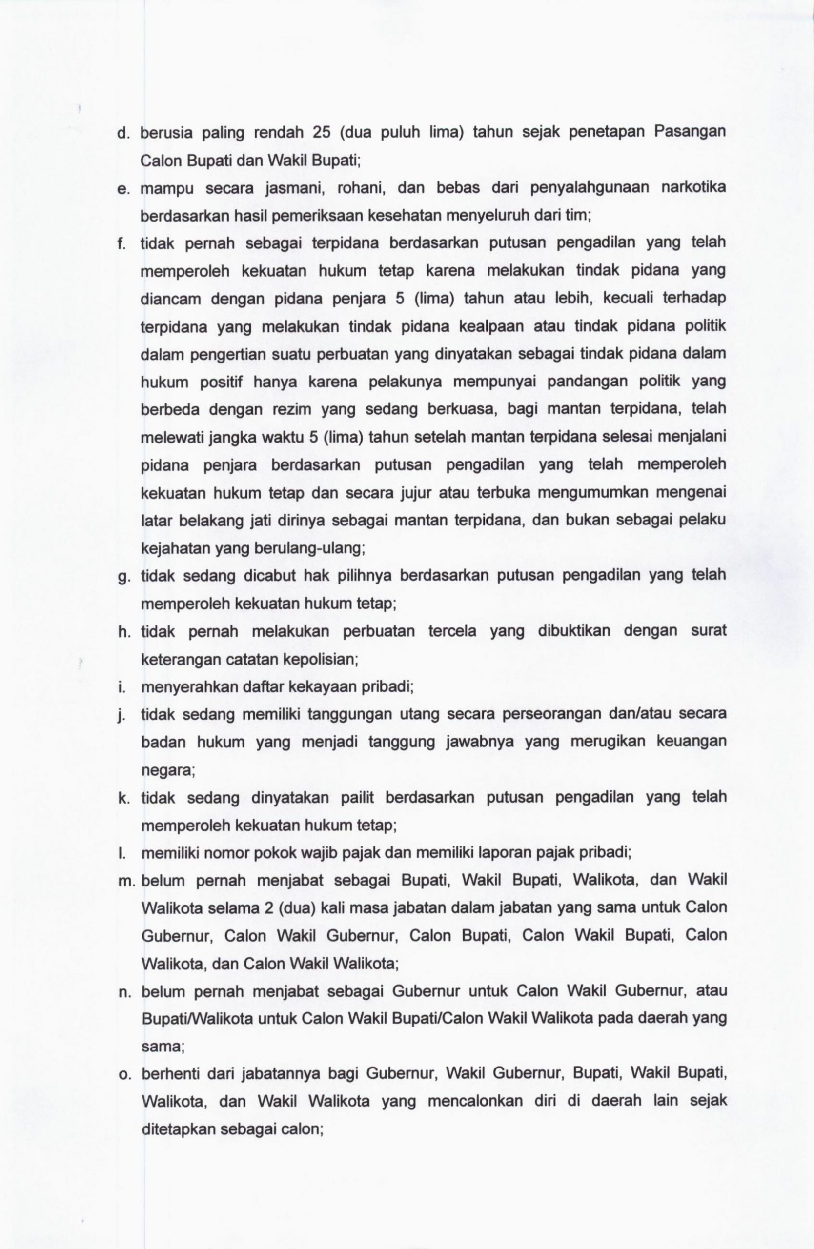 Menyikapi Putusan Mahkamah Konstitusi, KPU Kabupaten Kediri Mengumumkan Syarat Pendaftaran Calon Bupati dan Wakil Bupati Kediri 2024 2024-08-252024-08-25by admin-790 Viewsby admin Post Views: 790 Don't MissKetepatan Waktu KA Daop 7 Madiun Lampaui Target, Penumpang Nataru 2025/2026 Naik 8 PersenDandim 0809/Kediri Resmi Dijabat Letkol Dhavid Nur Hardiansyah, Siap Kawal Proyek Strategis NasionalPerangkat Desa Tasikmadu Rangkap Jabatan di Gapoktanhut, Pelayanan Publik TergangguTiket KA Nataru dari Daop 7 Madiun Masih Tersedia, KAI Imbau Masyarakat Segera Pesan TiketPengusaha Mobil Diduga Berupaya Kuasai Tanah Warga di Genteng Surabaya