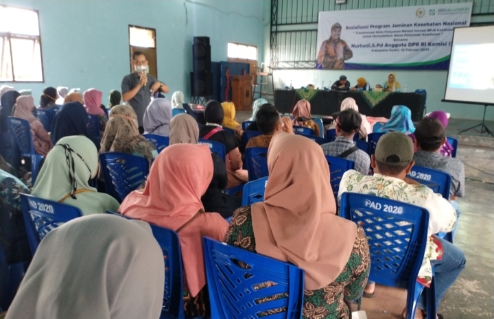 Hal itu diungkapkan Nurhadi saat menggelar Sosialisasi program Jaminan Kesehatan Nasional (JKN) dengan mengambil tema Transformasi Mutu Pelayanan Melalui Inovasi BPJS Kesehatan Untuk Memudahkan Akses Pelayanan Kesehatan kepada masyarakat, bertempat di Gedung Serbaguna Desa Pokok Kecamatan Wates Kabupaten Kediri, Jumat (10/2/2023).