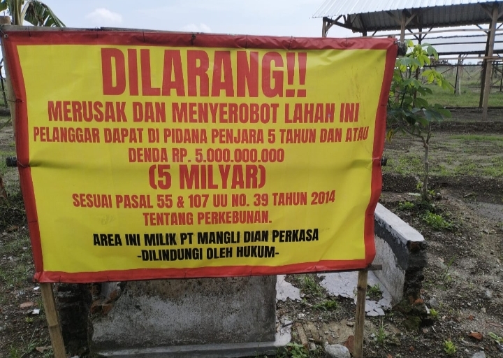 PT Mangli Dian Perkasa kembali menjadi sorotan setelah diketahui memasang plang kepemilikan lahan di area perkebunan, meski hingga kini perusahaan tersebut belum mengantongi surat resmi perpanjangan Hak Guna Usaha (HGU).