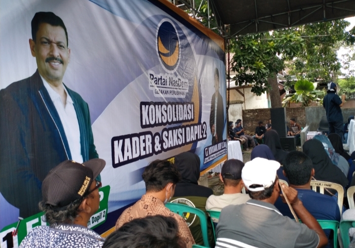 Fuad, SP calon Legeslatif (Caleg) dari Partai NasDem Dapil 2 Kabupaten Kediri menggelar konsolidasi dengan para Kader, relawan dan saksi, disalah satu Caffe di Dusun Kongan Jl. Pangrango Kecamatan Pare Kabupaten Kediri, dengan ikuti sekitar 1000 orang, pada Minggu (4/2/2024).