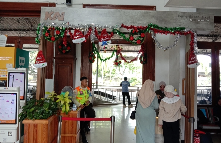 Sambut Pelanggan, KAI Daop 7 Madiun Hadirkan Ornamen Tematik Natal dan Tahun Baru di Stasiun